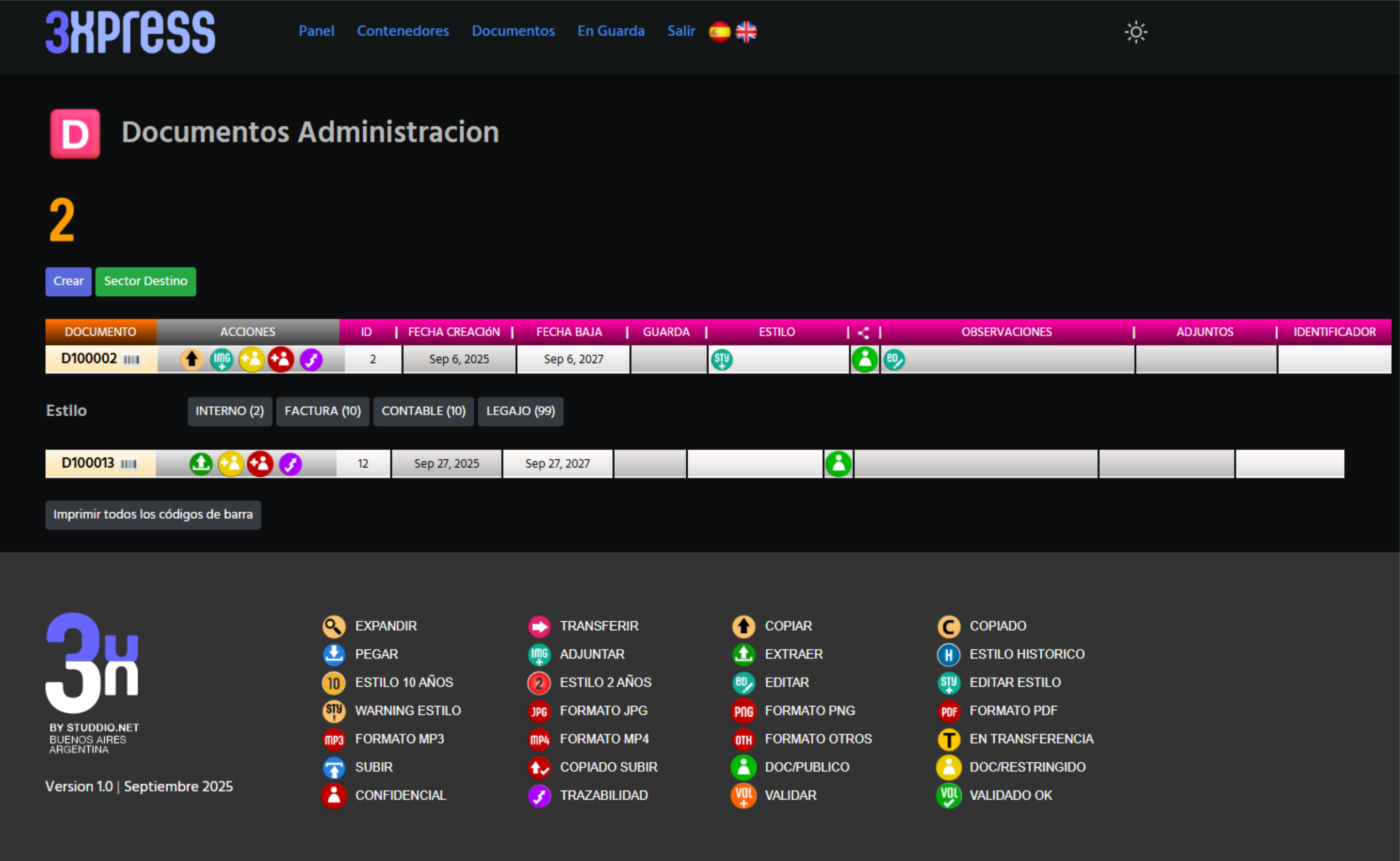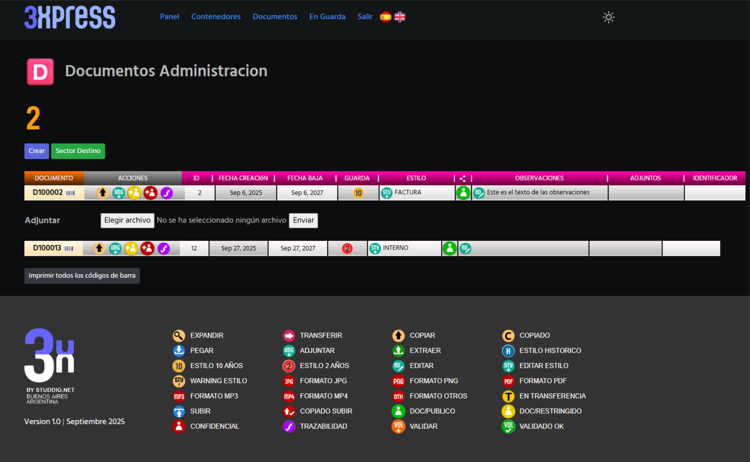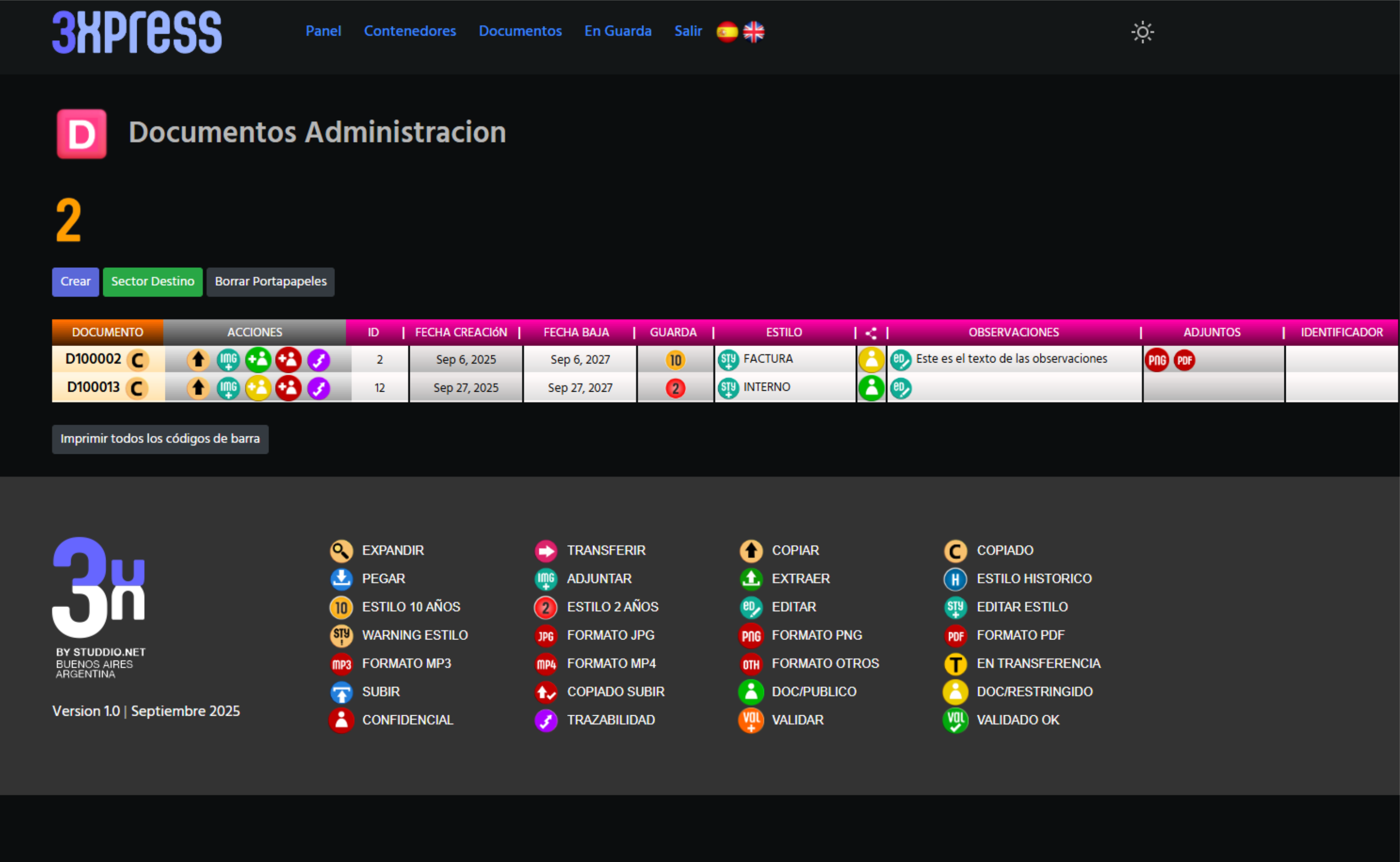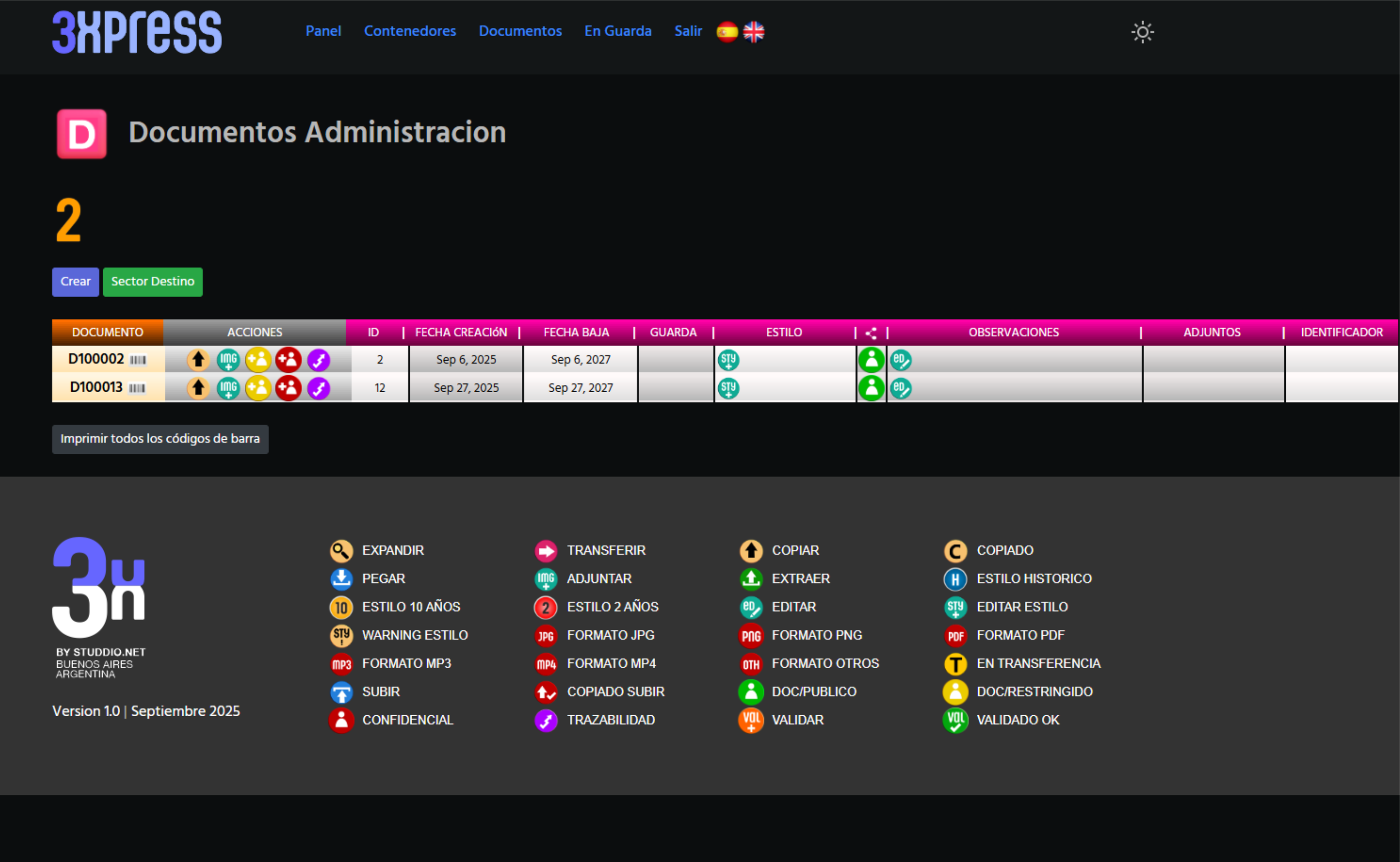 El apartado documentos permite administrar los documentos del sector, en todos sus aspectos.