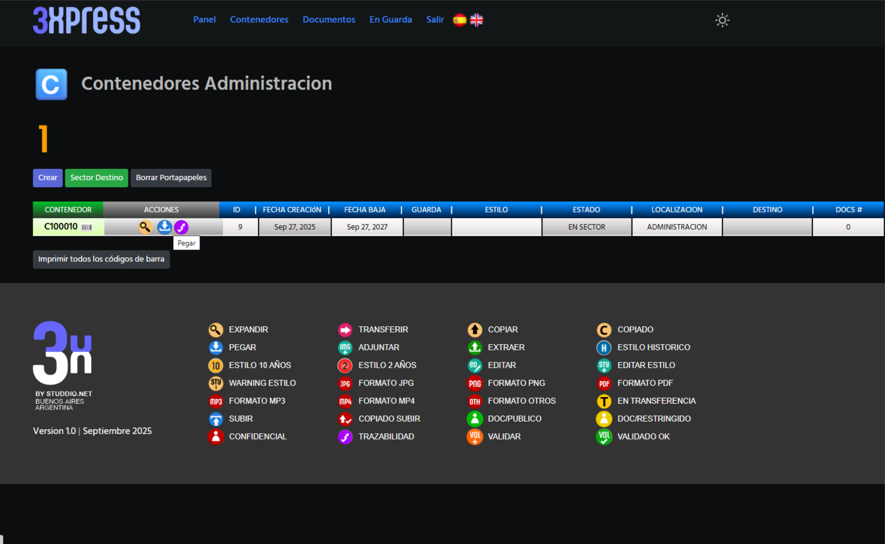 Luego de haber copiado, en este caso, dos documentos al portapapeles, vamos al apartado contendores, y vamos, en el contenedor creado previamente, a pegar los dos documentos.