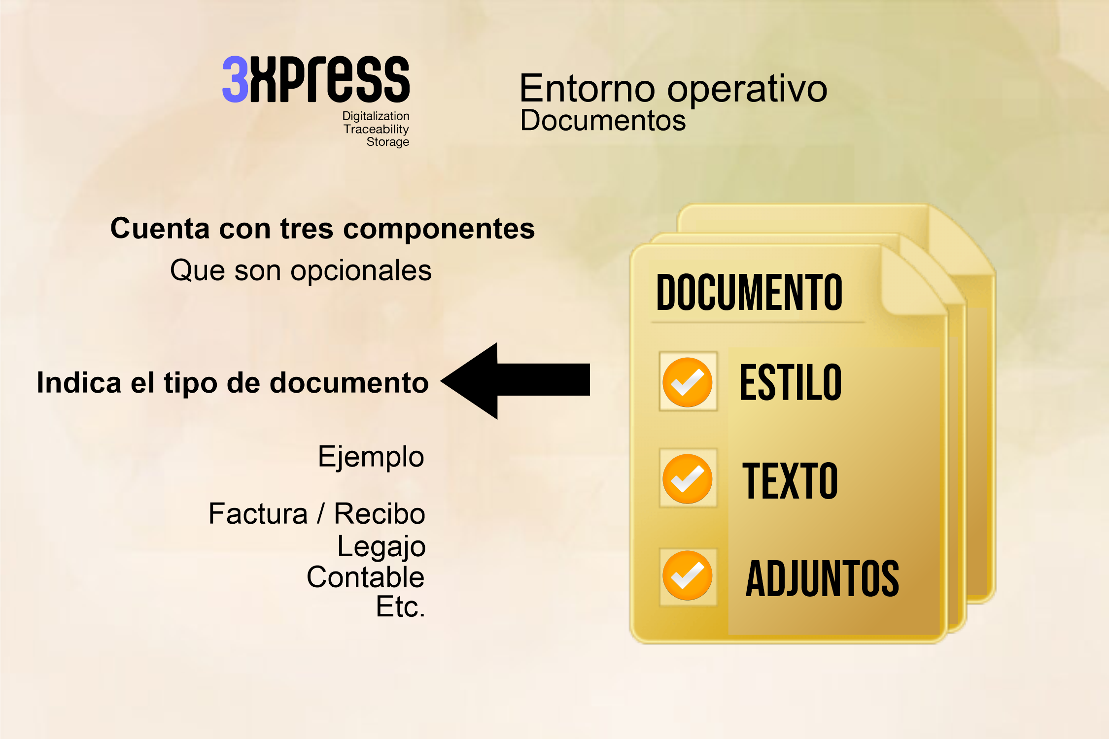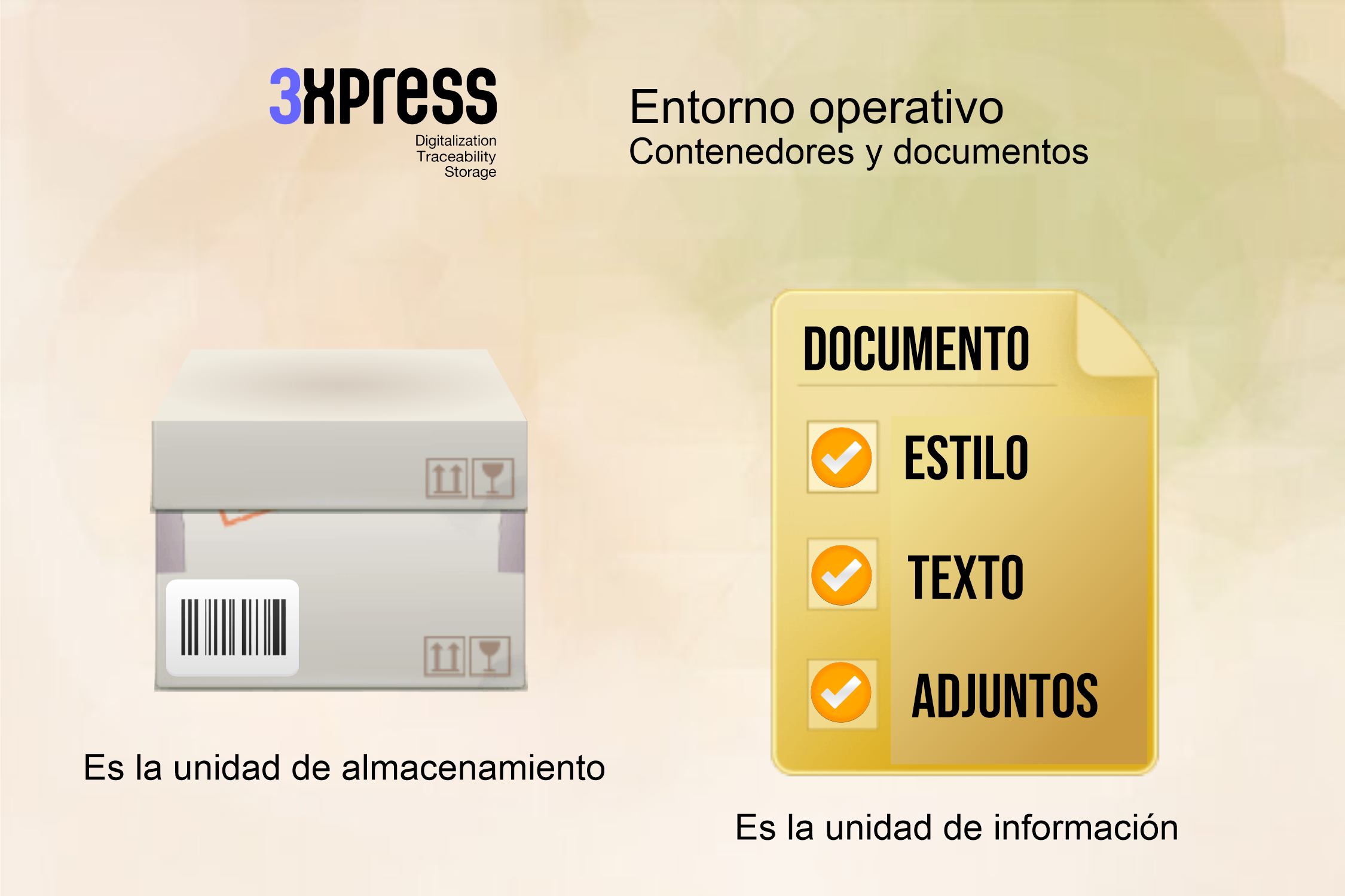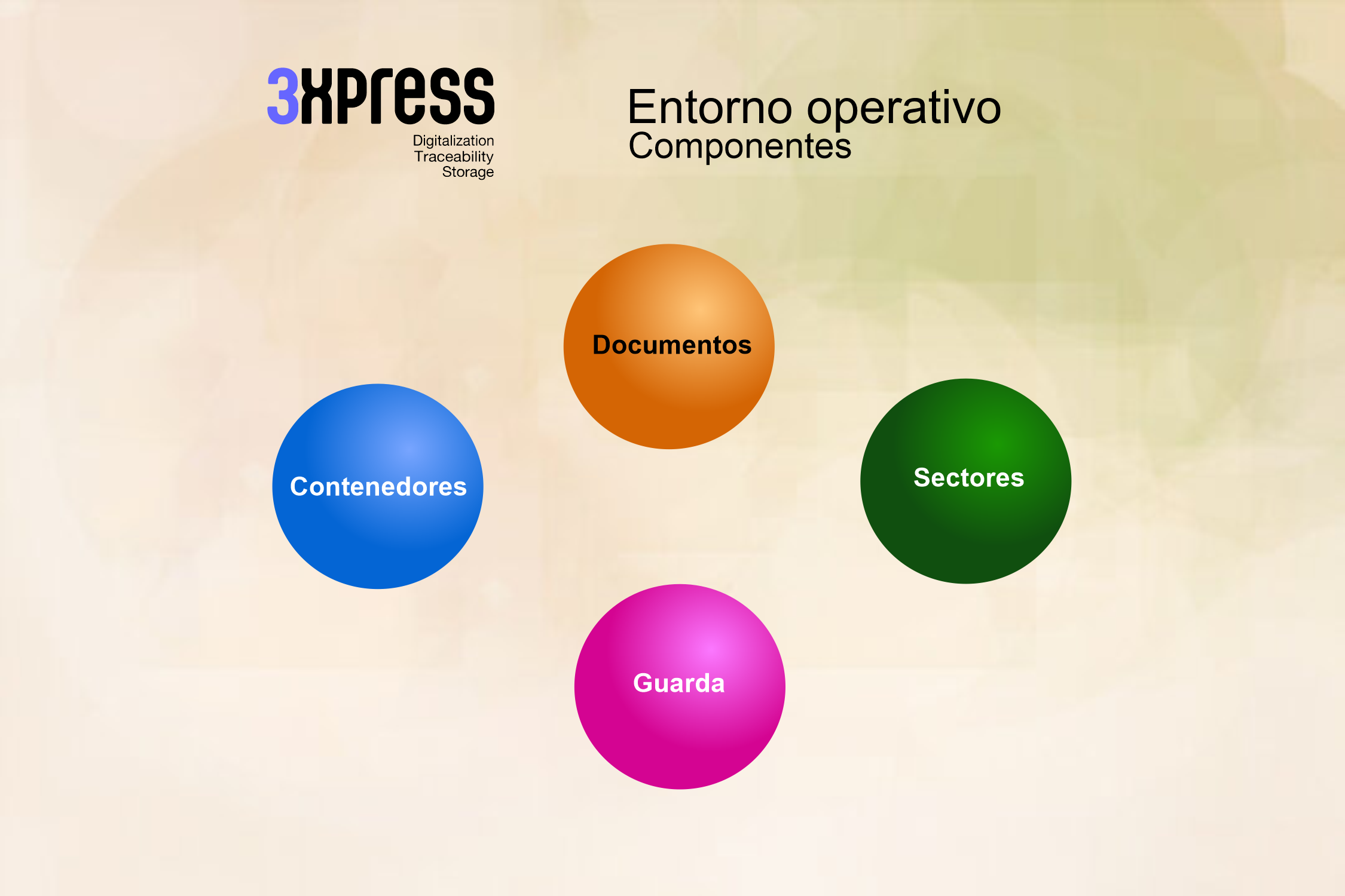 Cuatro son los componentes que maneja el sistema : Contenedores, documentos, sectores, y guarda.