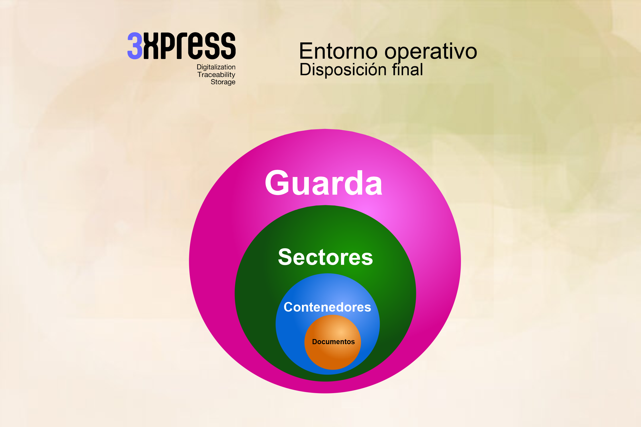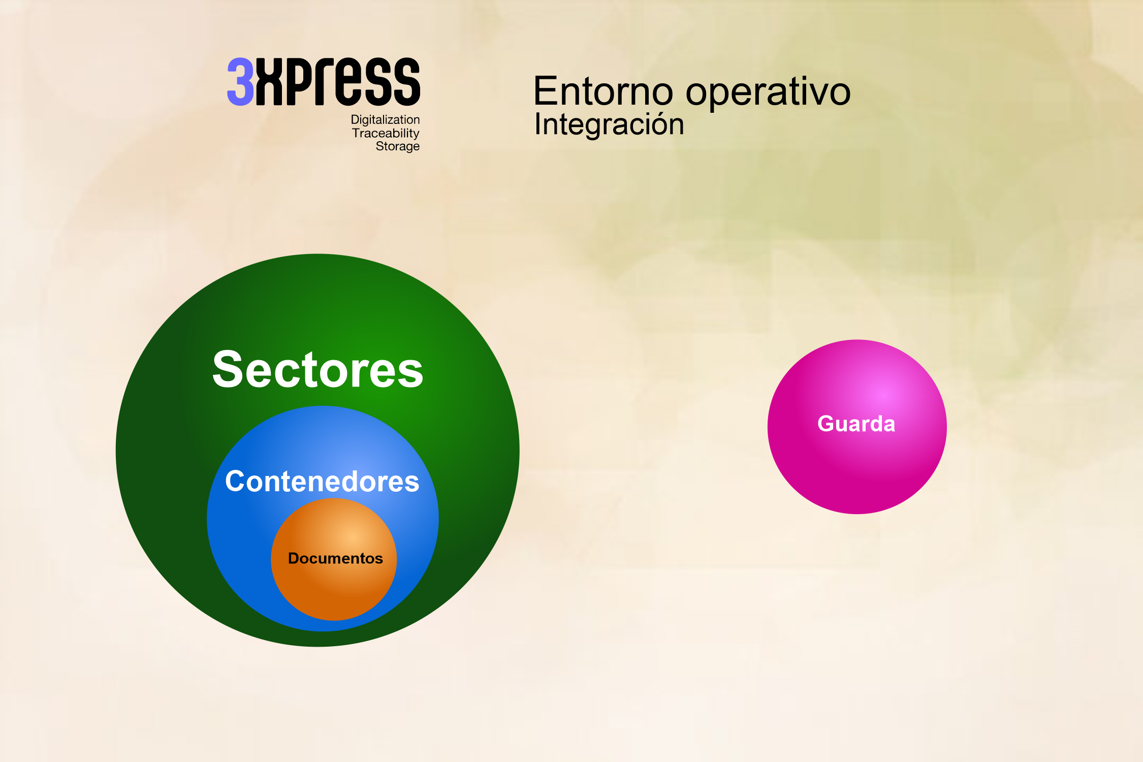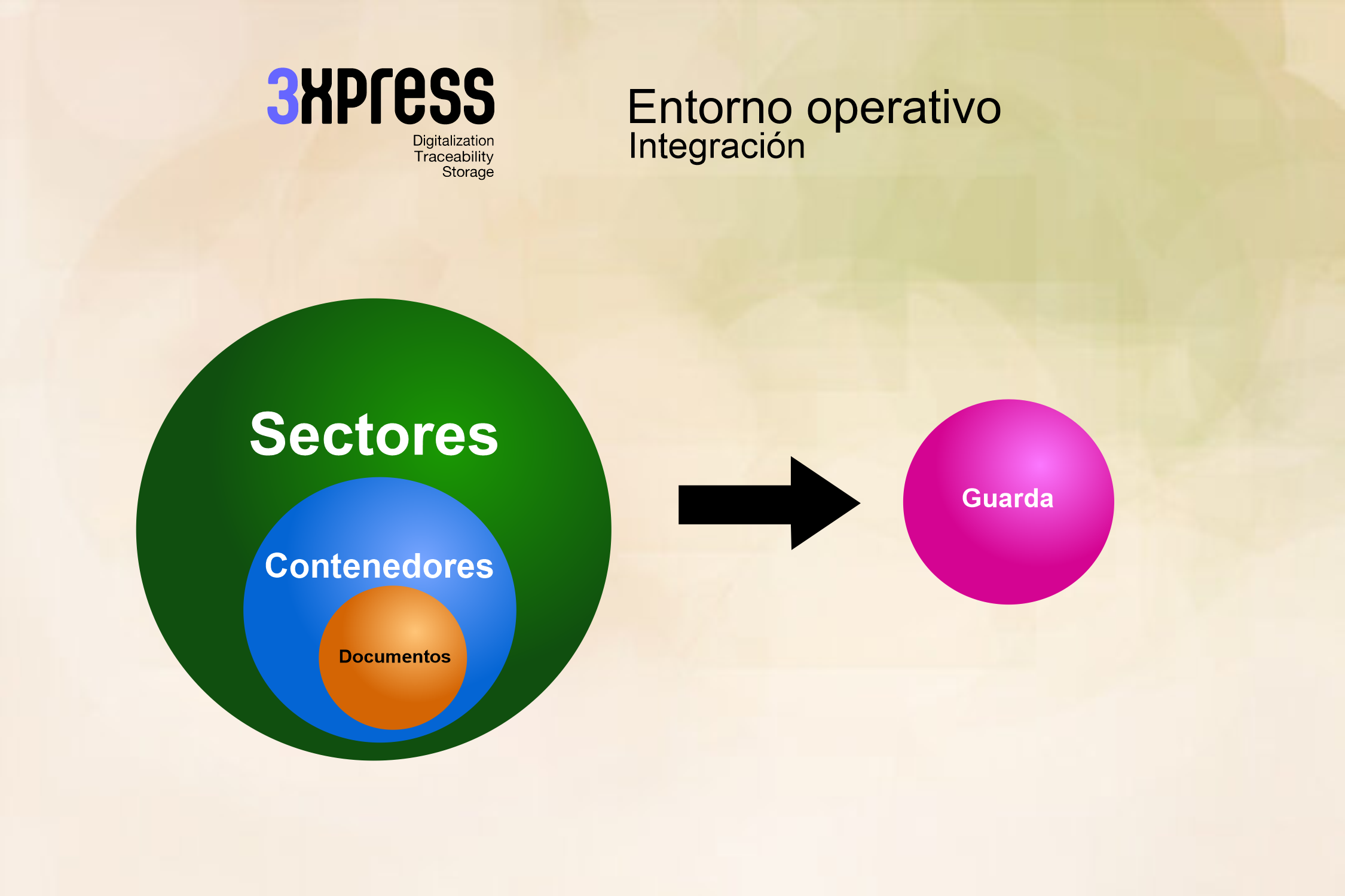 El conjunto contenedores, documentos, sectores, una vez concluída la creación de los medios físicos, se asocian a la guarda.